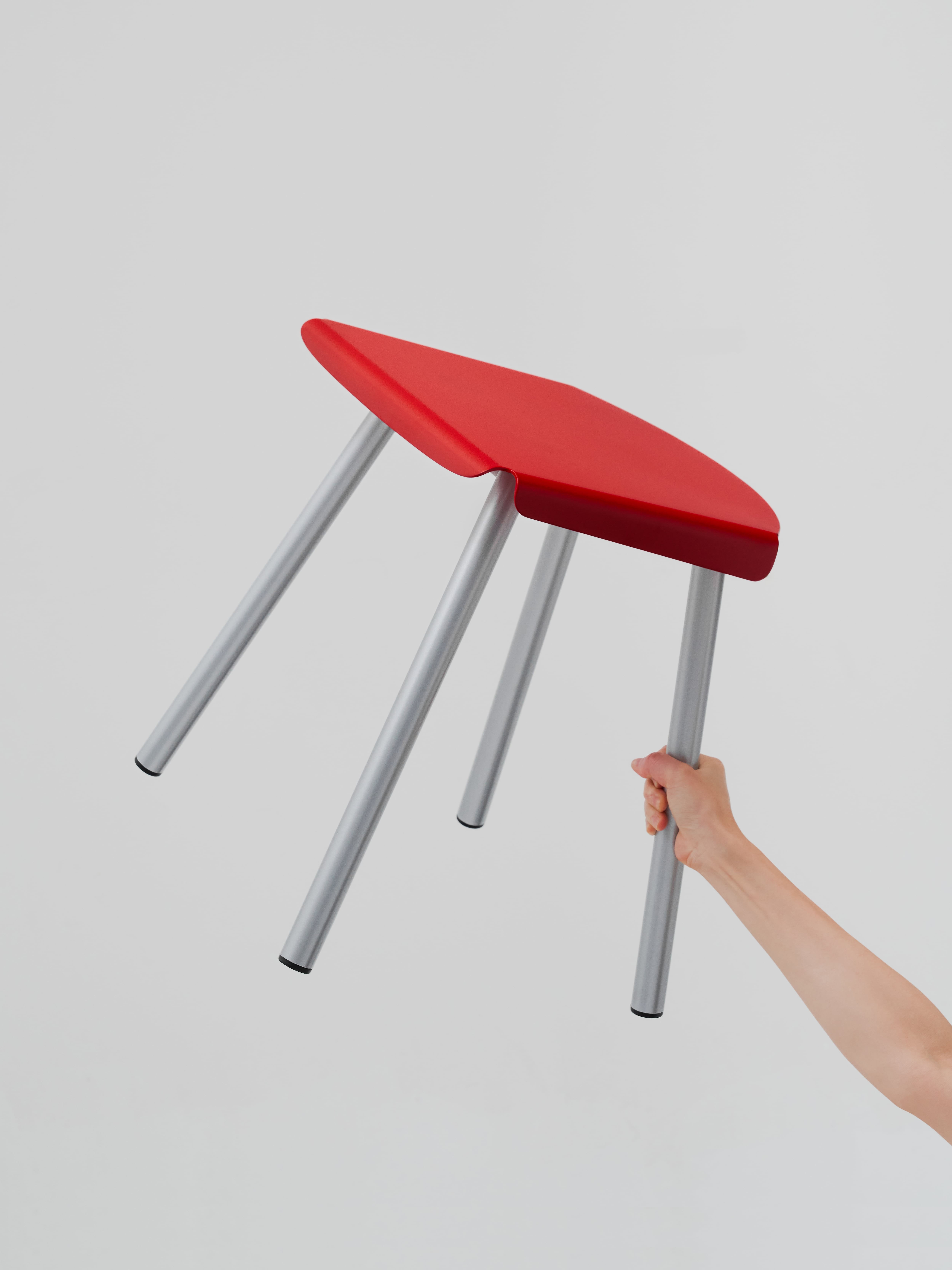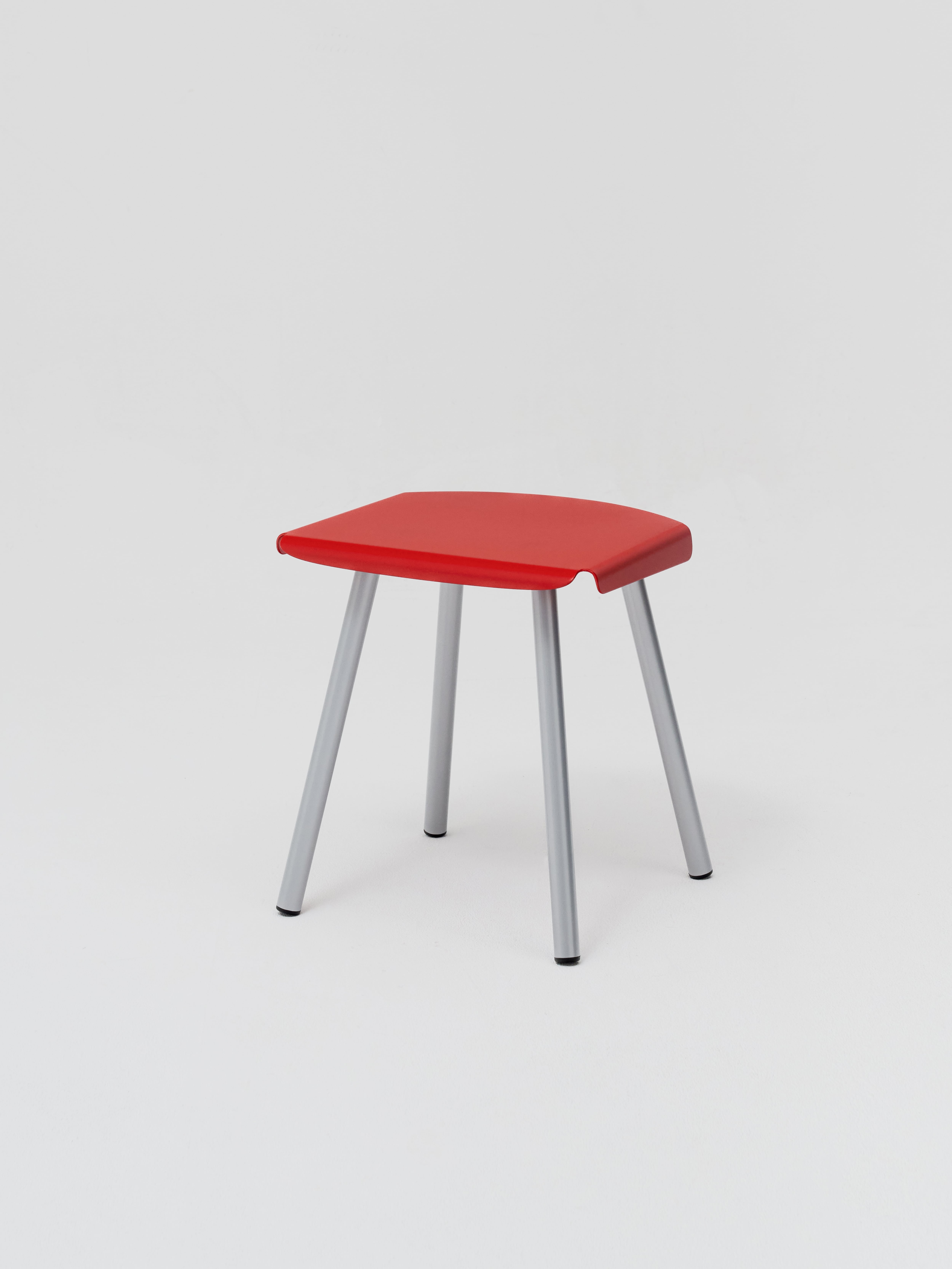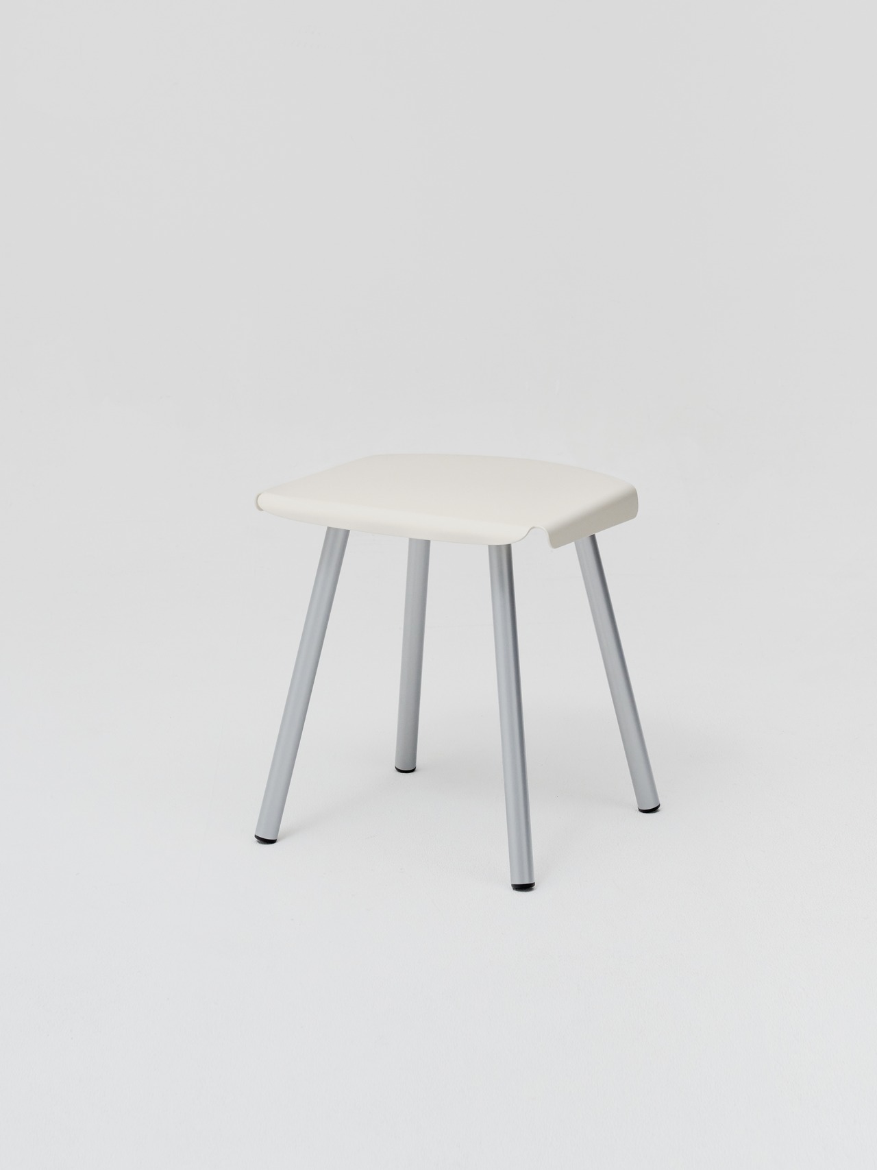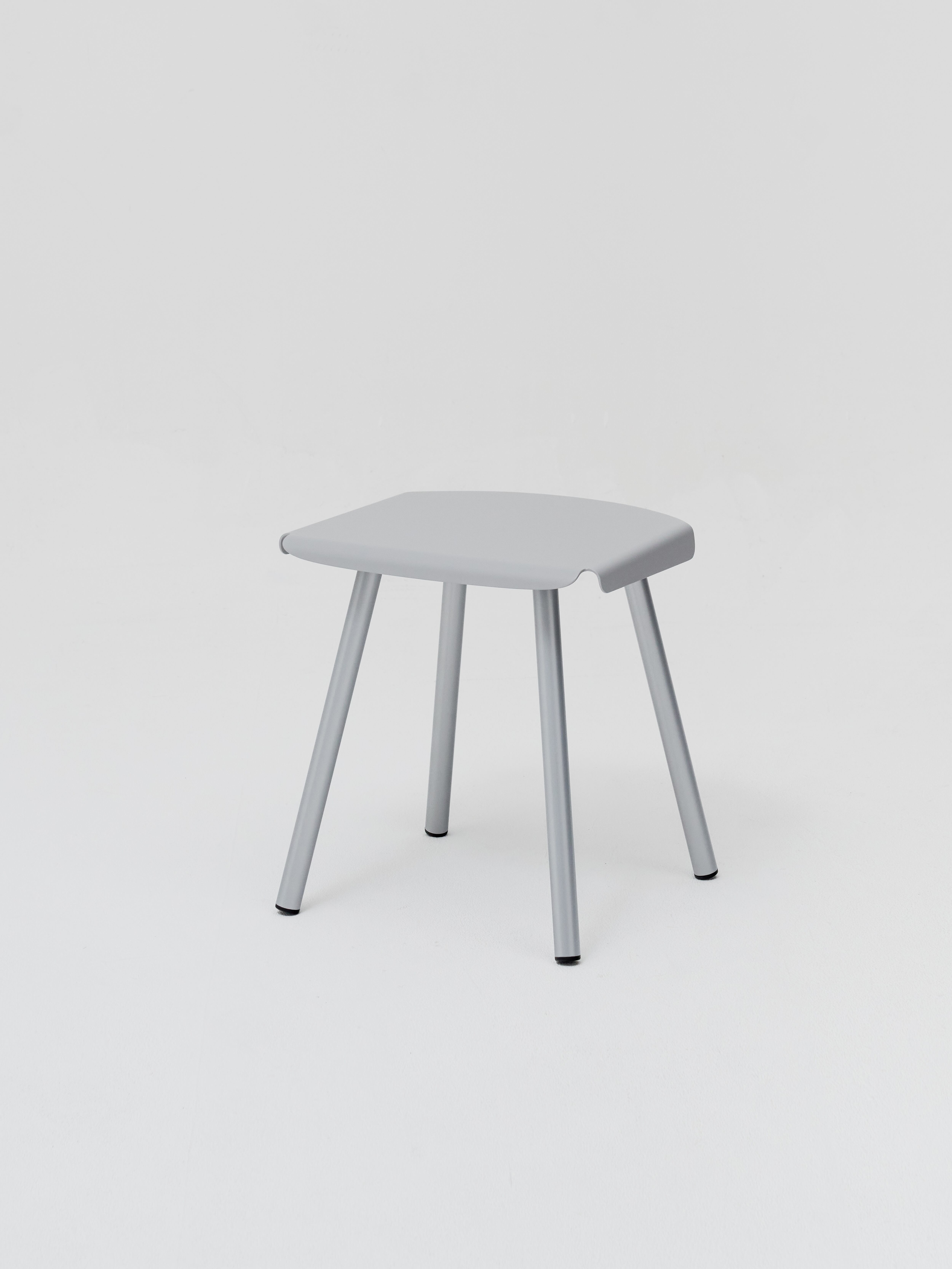 厚みわずか3㎜のアルミニウム板の軽さと柔軟性を活かしつつ、板金特有の鋭さではなく、柔らかな曲線美を採用しています。金属が持つ冷たい印象を払拭し、温かみのある佇まいを目指すことで、素材と技術の融合による新たな家具のあり方を提案しています。