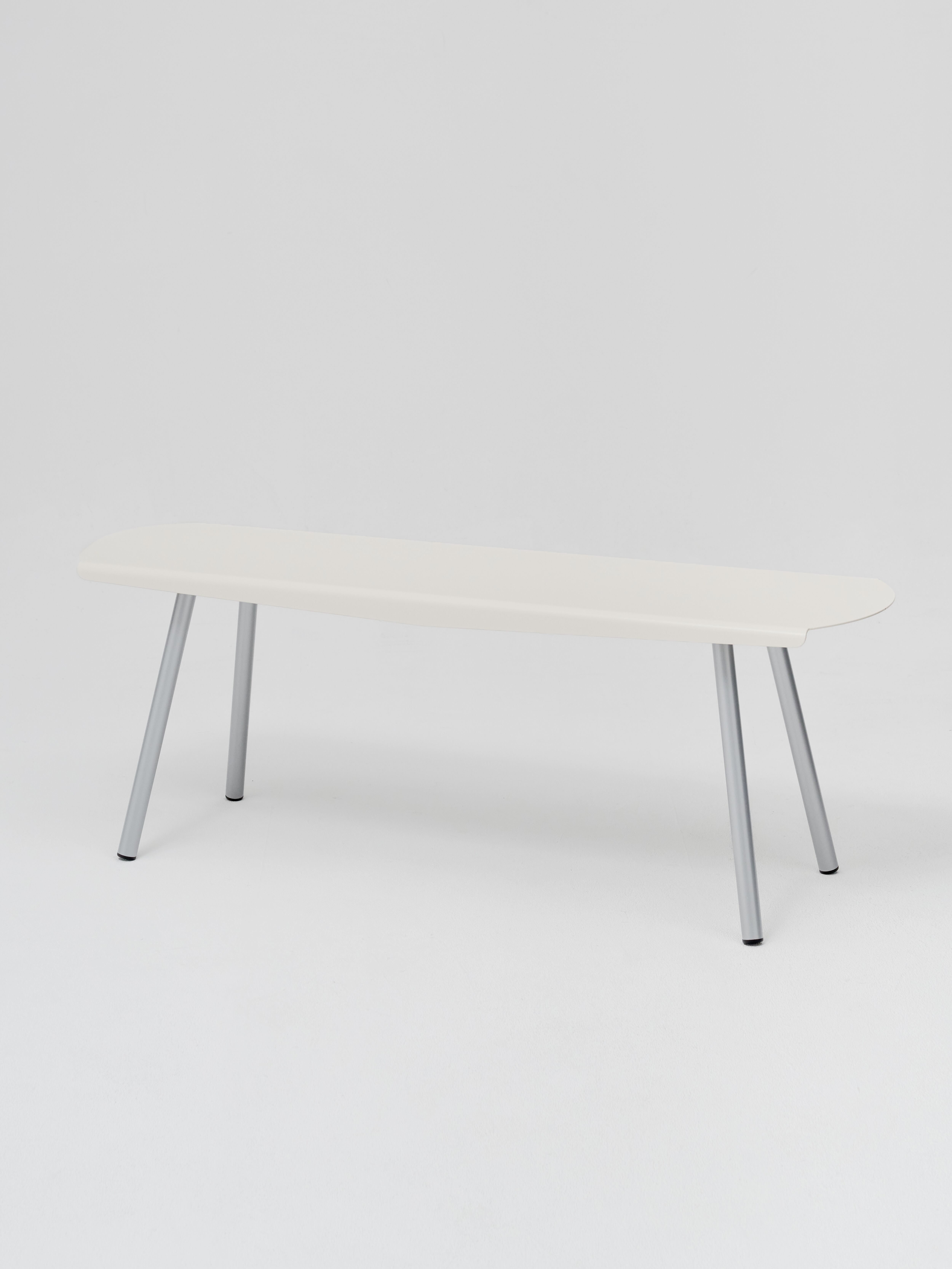 厚みわずか3㎜のアルミニウム板の軽さと柔軟性を活かしつつ、板金特有の鋭さではなく、柔らかな曲線美を採用しています。金属が持つ冷たい印象を払拭し、温かみのある佇まいを目指すことで、素材と技術の融合による新たな家具のあり方を提案しています。
