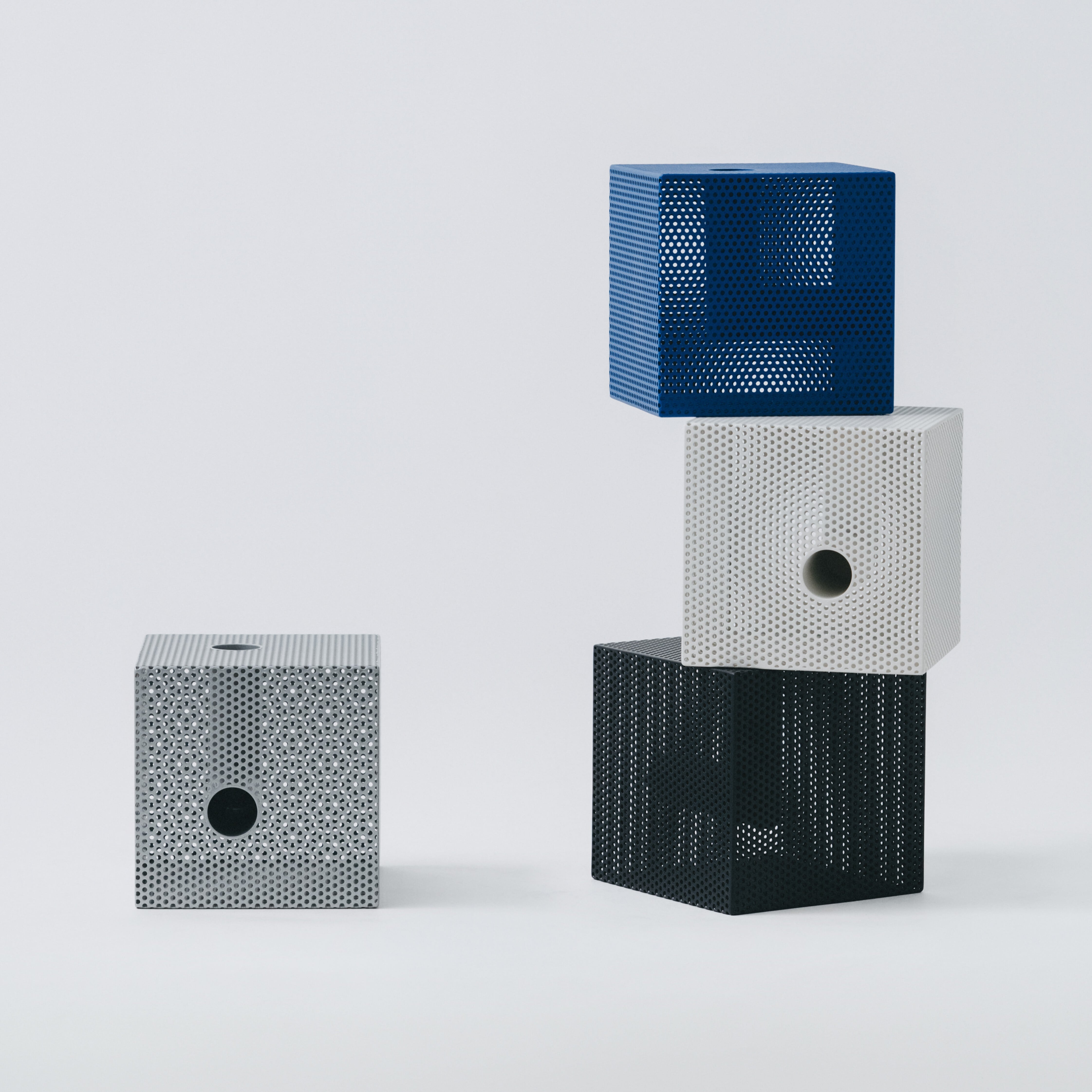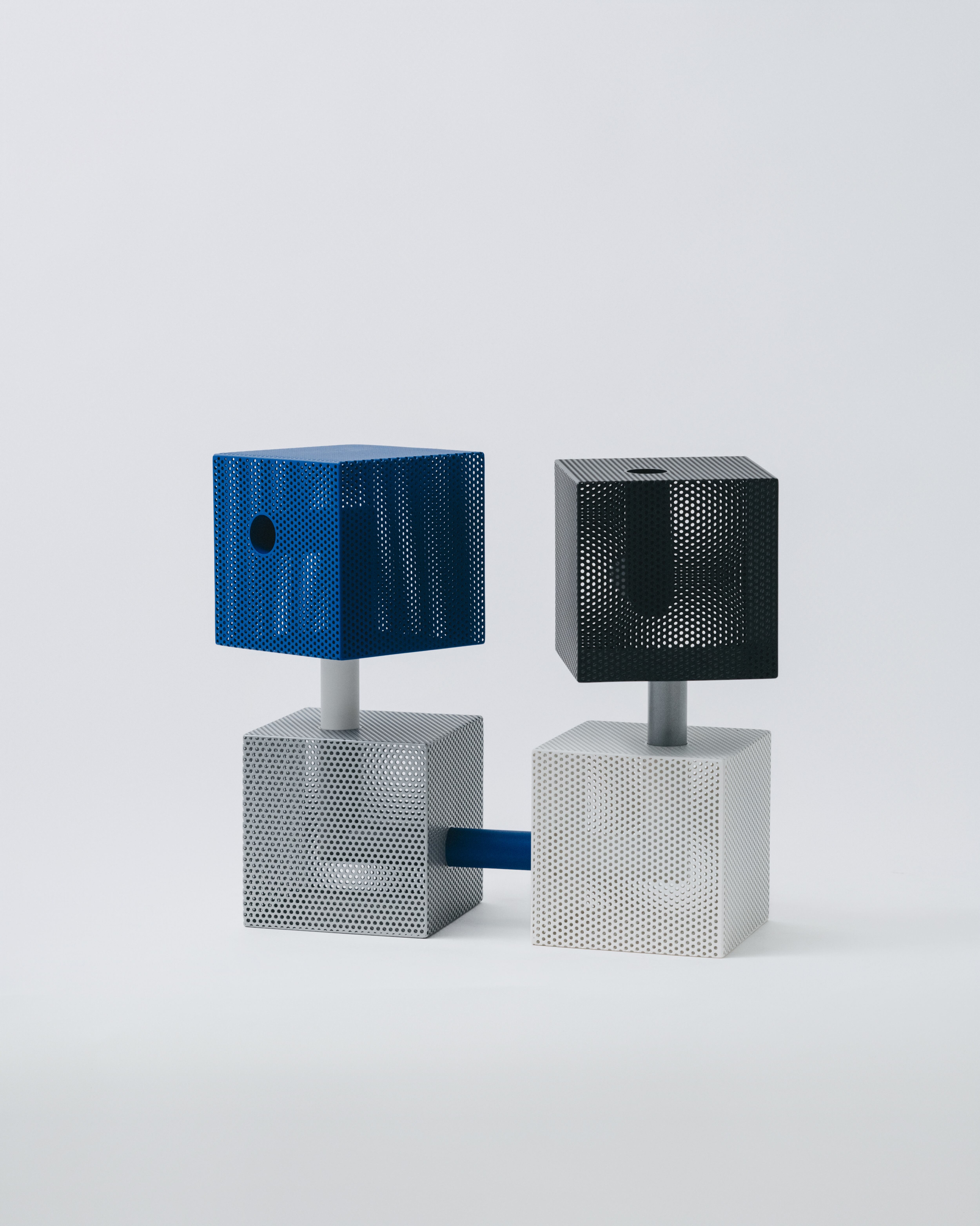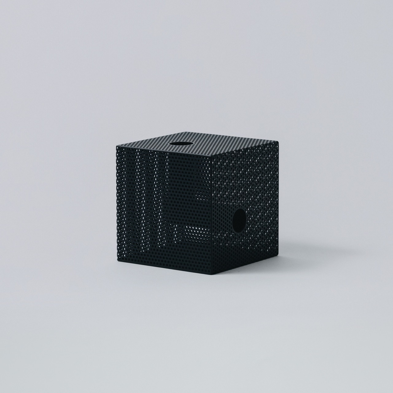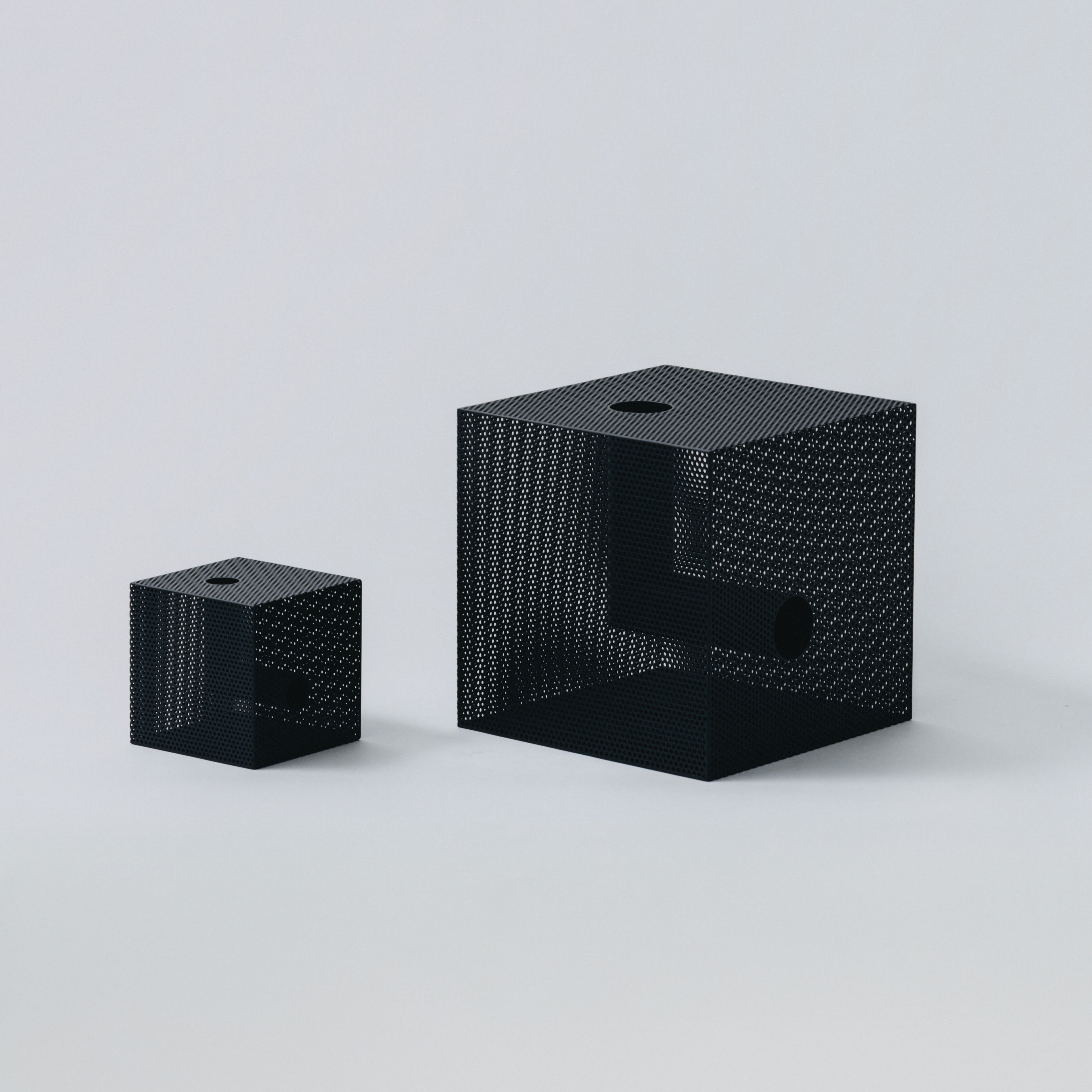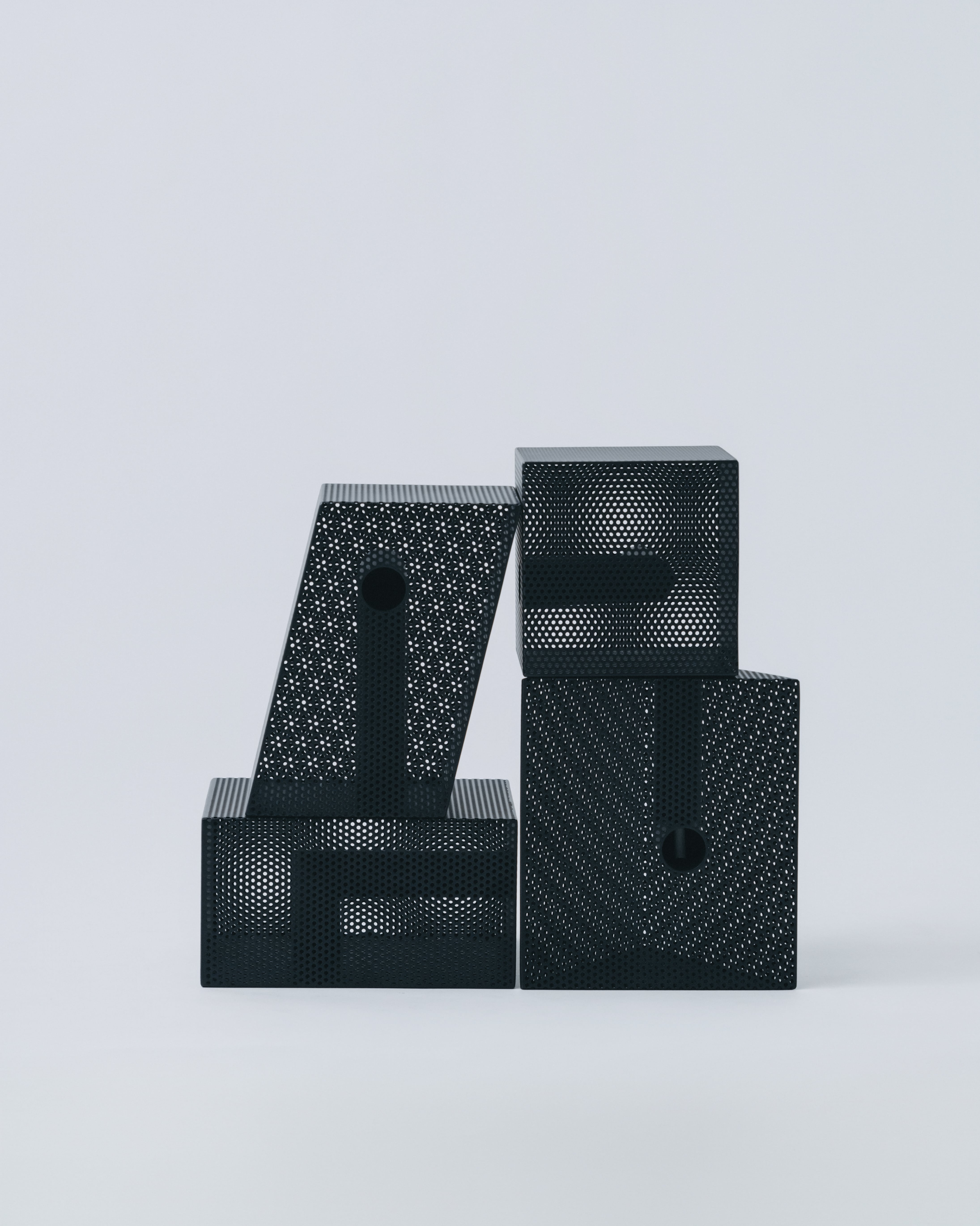 パンチングメタルは、建築・家具・工業製品などで、軽量化・通気性・強度といった機能性を目的に発展してきた素材。しかし、“透けているのに覆っている”、“閉じているようで抜けている” という曖昧な存在感を持ち、光や視点によって印象が大きく変わります。Punching Block は、この“見え方の揺らぎ”そのものに焦点を当てています。