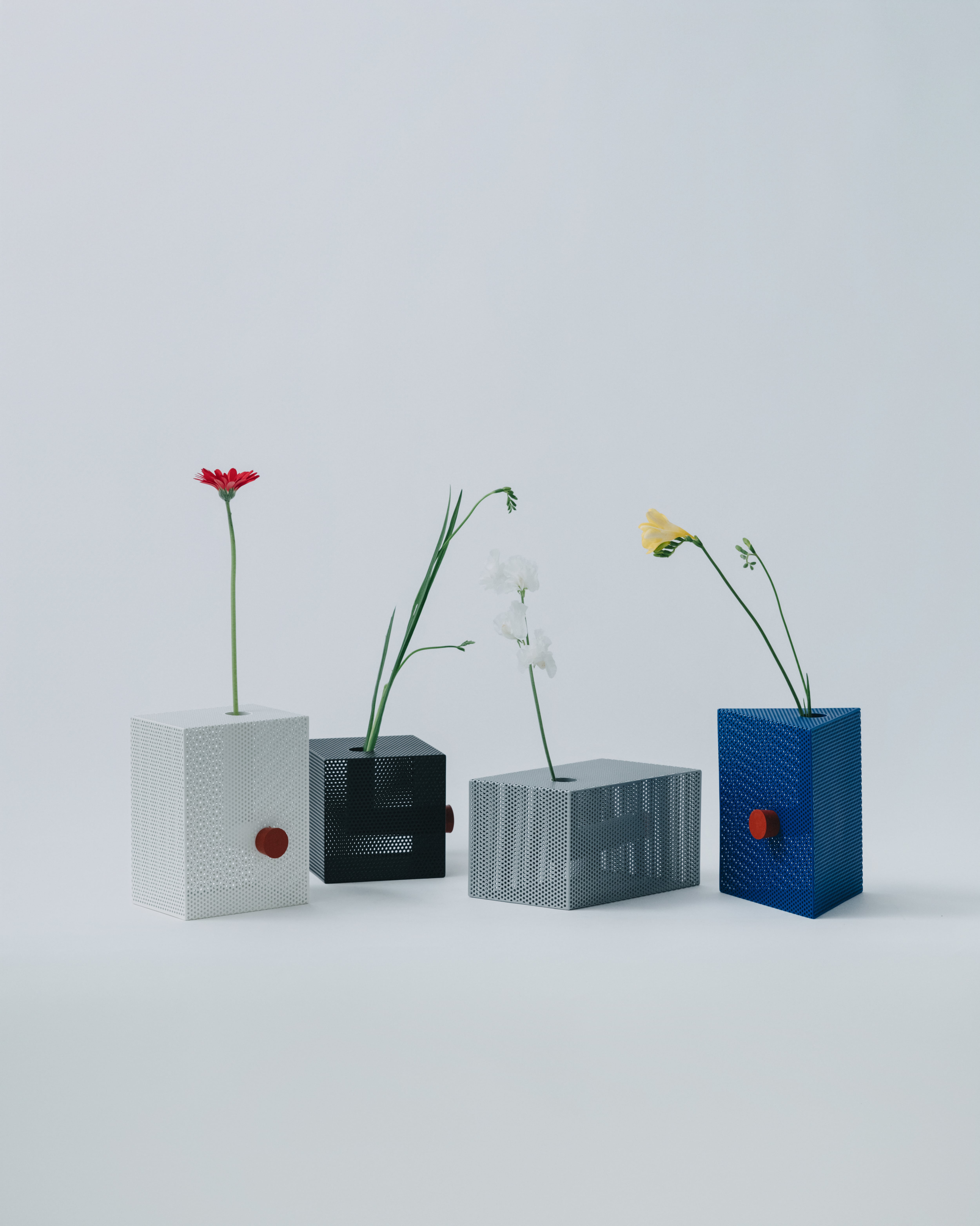 Punching Block は、京都を拠点にデザインスタジオ兼古道具店を営む ものや と、共同で制作した、パンチングメタルを用いたオブジェコレクションです。