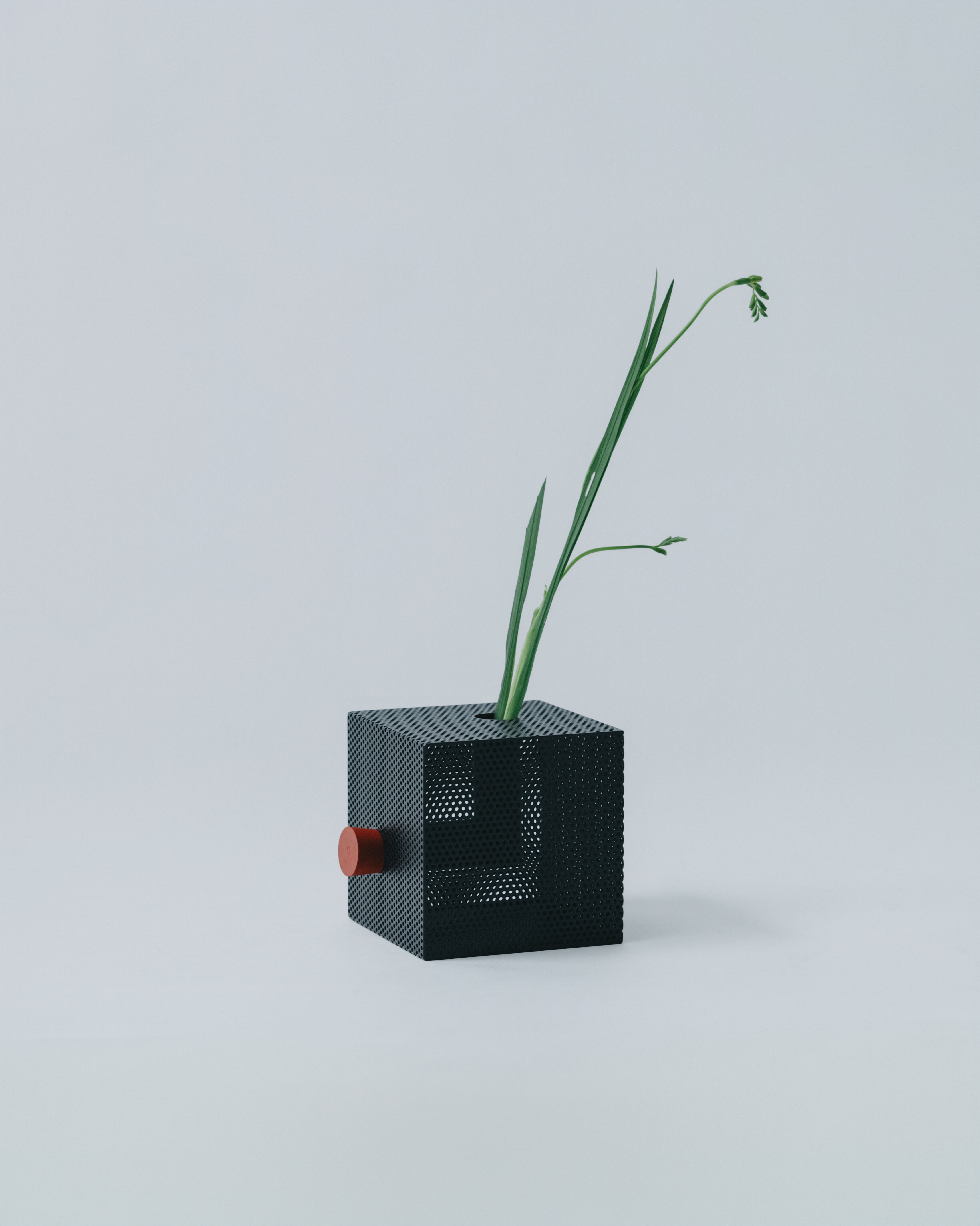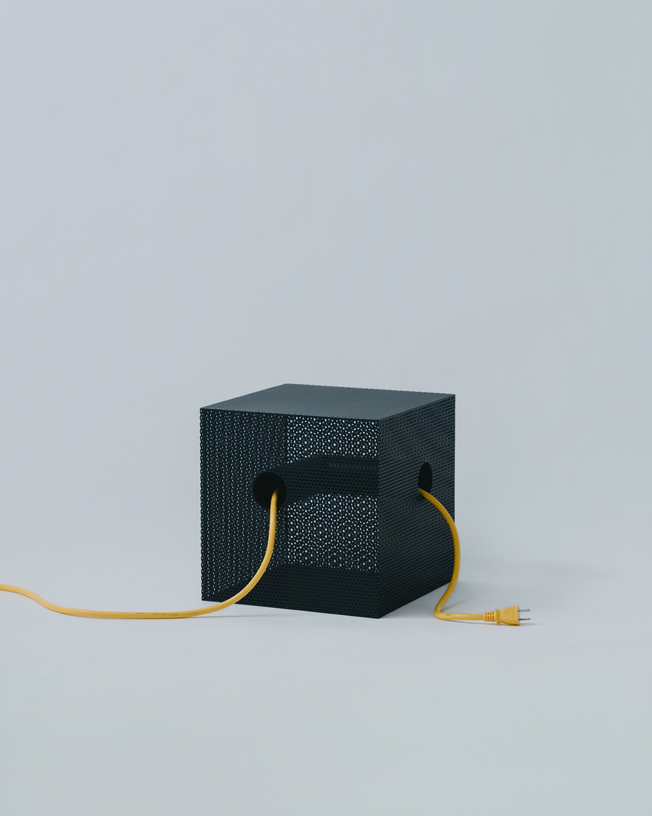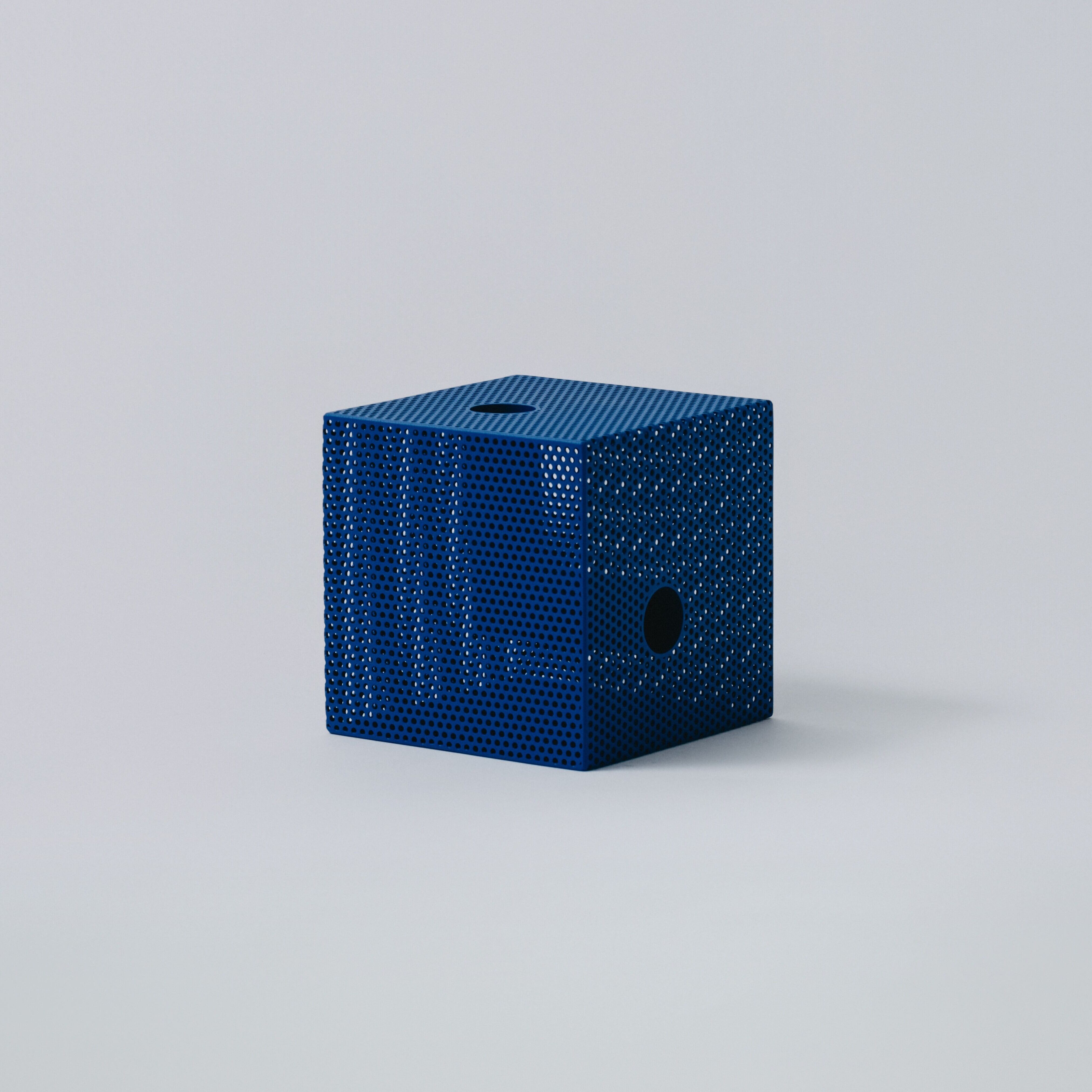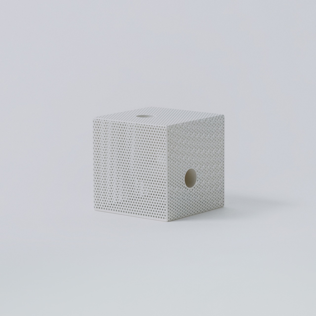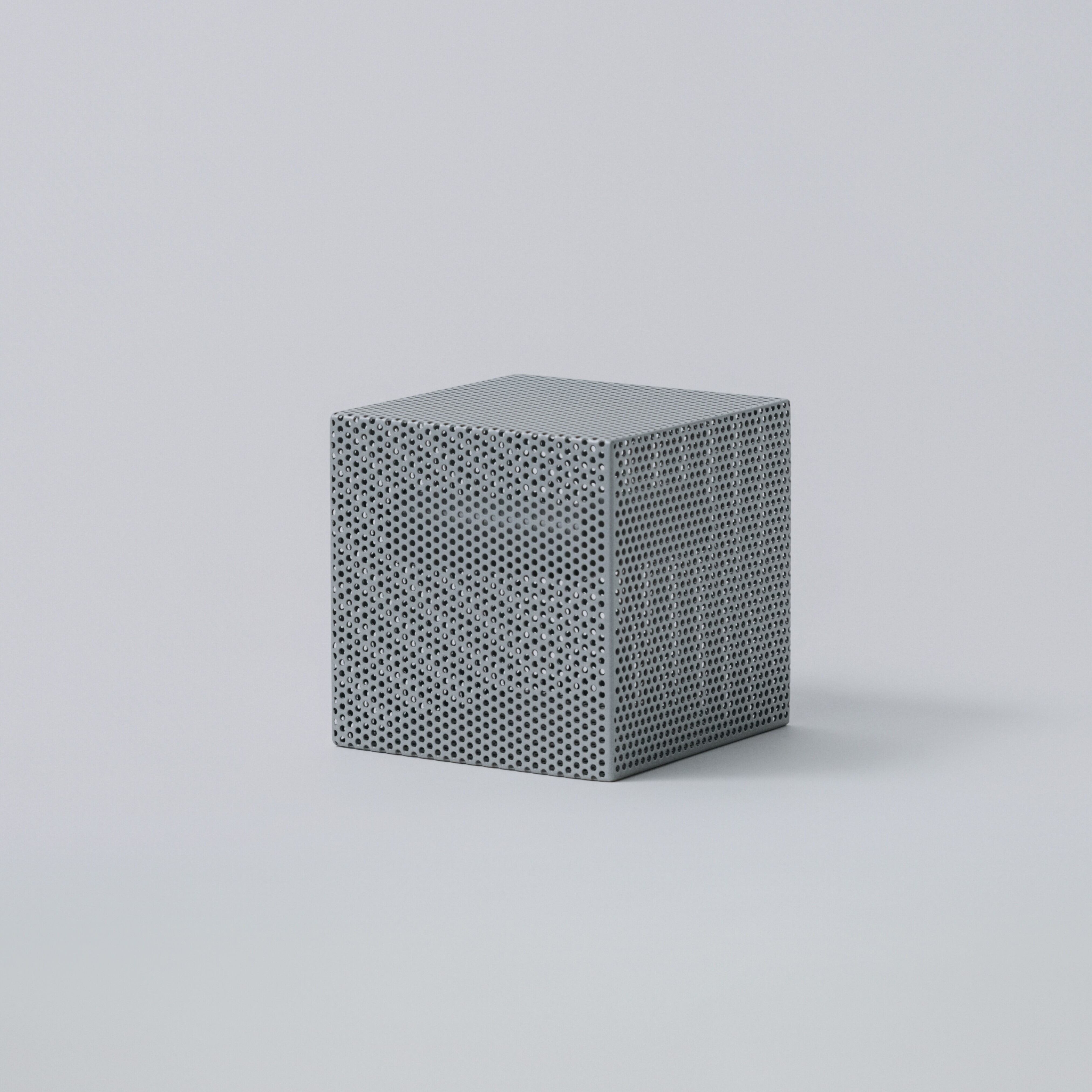 パンチングメタルは、建築・家具・工業製品などで、軽量化・通気性・強度といった機能性を目的に発展してきた素材。しかし、“透けているのに覆っている”、“閉じているようで抜けている” という曖昧な存在感を持ち、光や視点によって印象が大きく変わります。Punching Block は、この“見え方の揺らぎ”そのものに焦点を当てています。