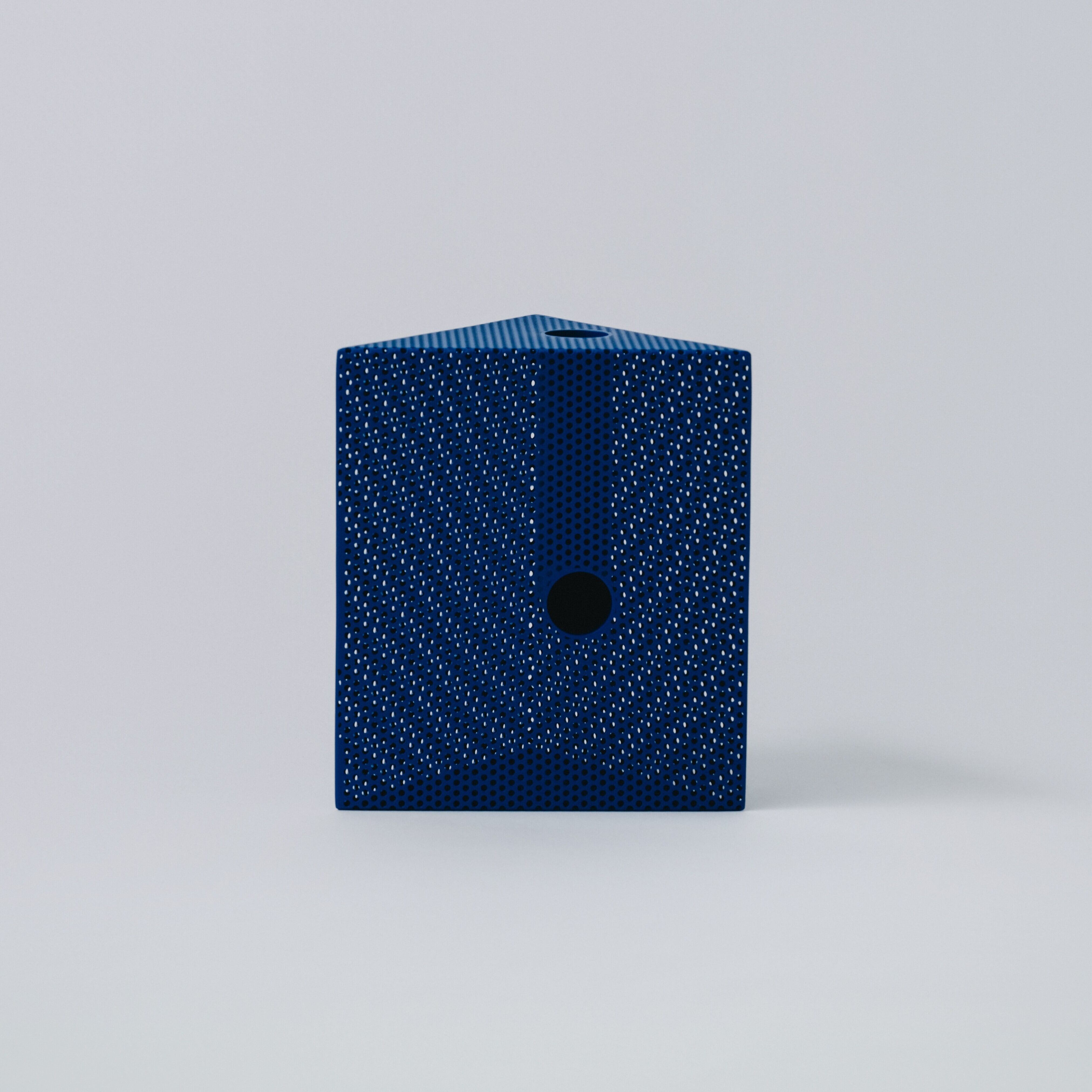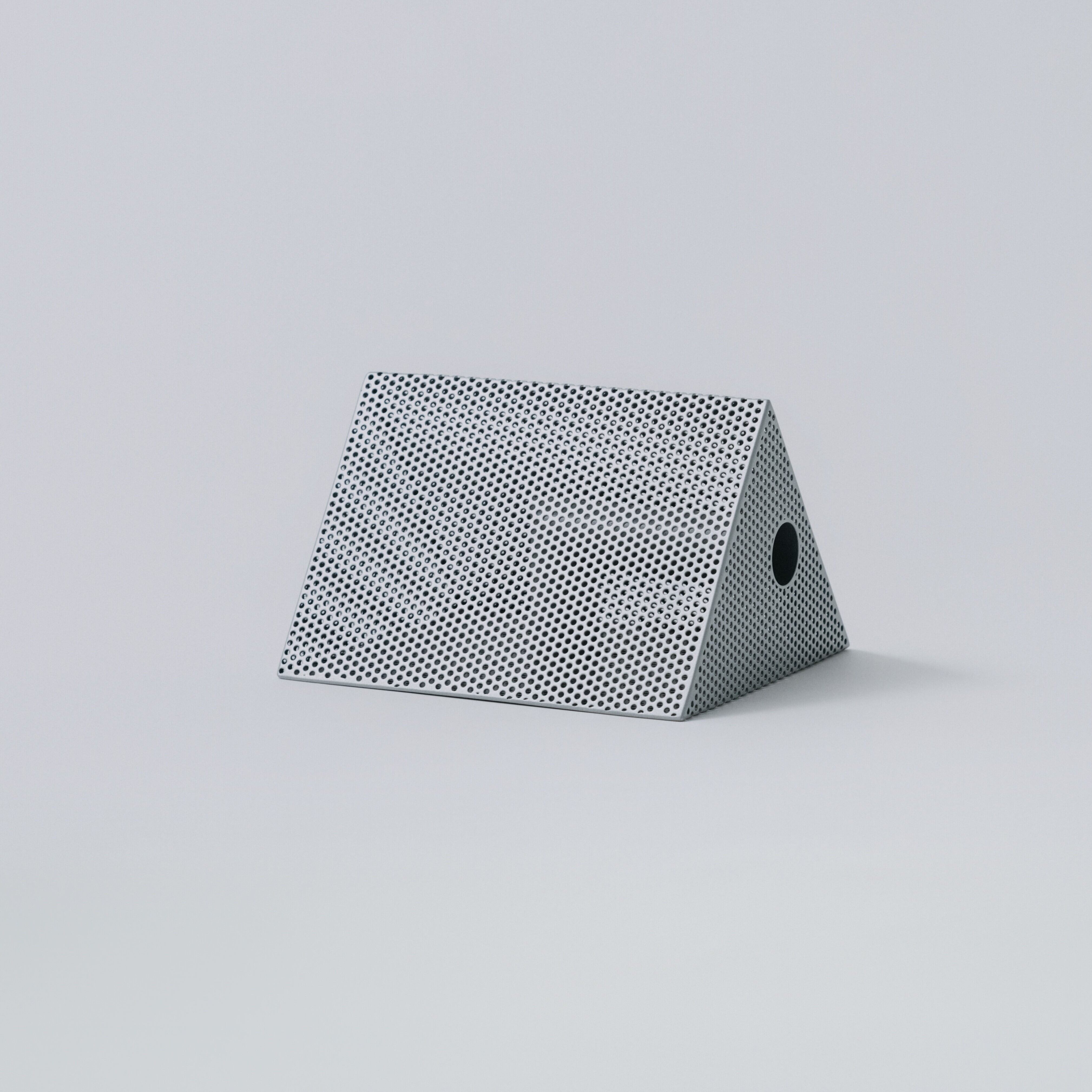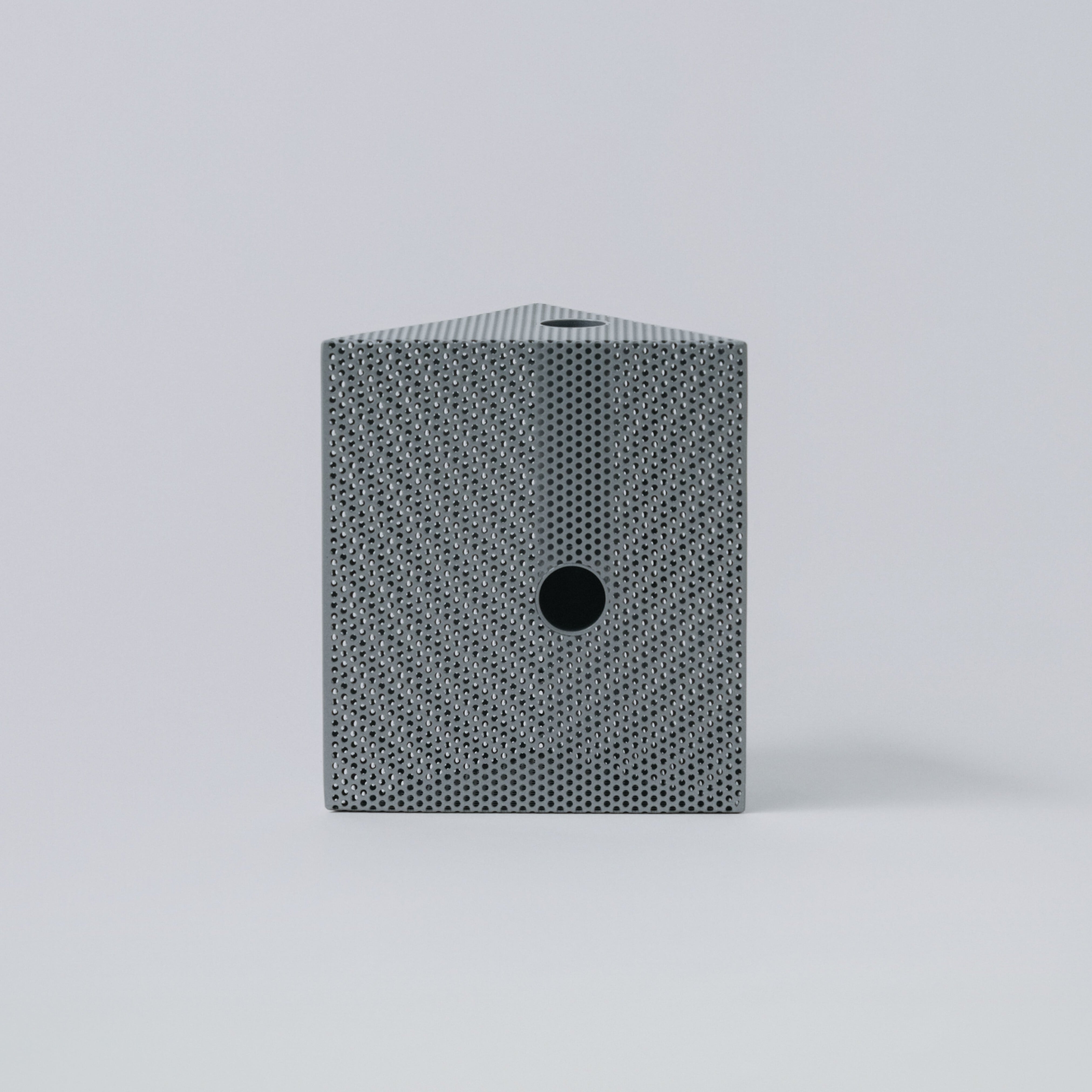 パンチングメタルは、建築・家具・工業製品などで、軽量化・通気性・強度といった機能性を目的に発展してきた素材。しかし、“透けているのに覆っている”、“閉じているようで抜けている” という曖昧な存在感を持ち、光や視点によって印象が大きく変わります。Punching Block は、この“見え方の揺らぎ”そのものに焦点を当てています。