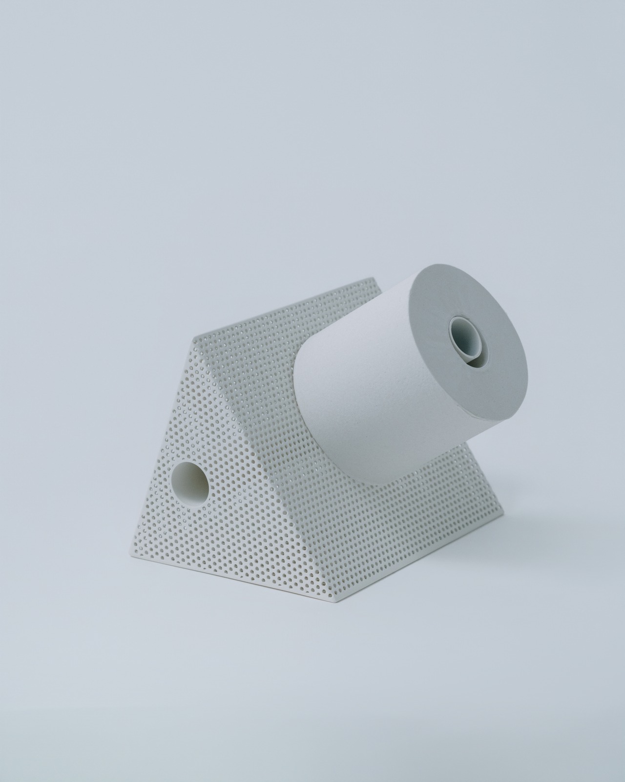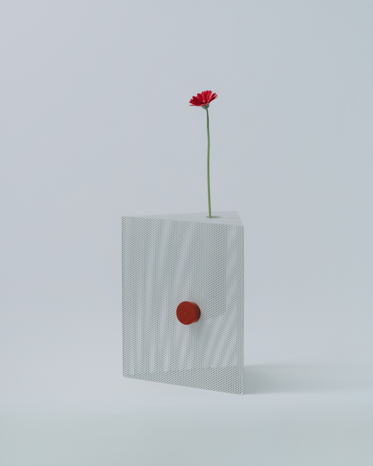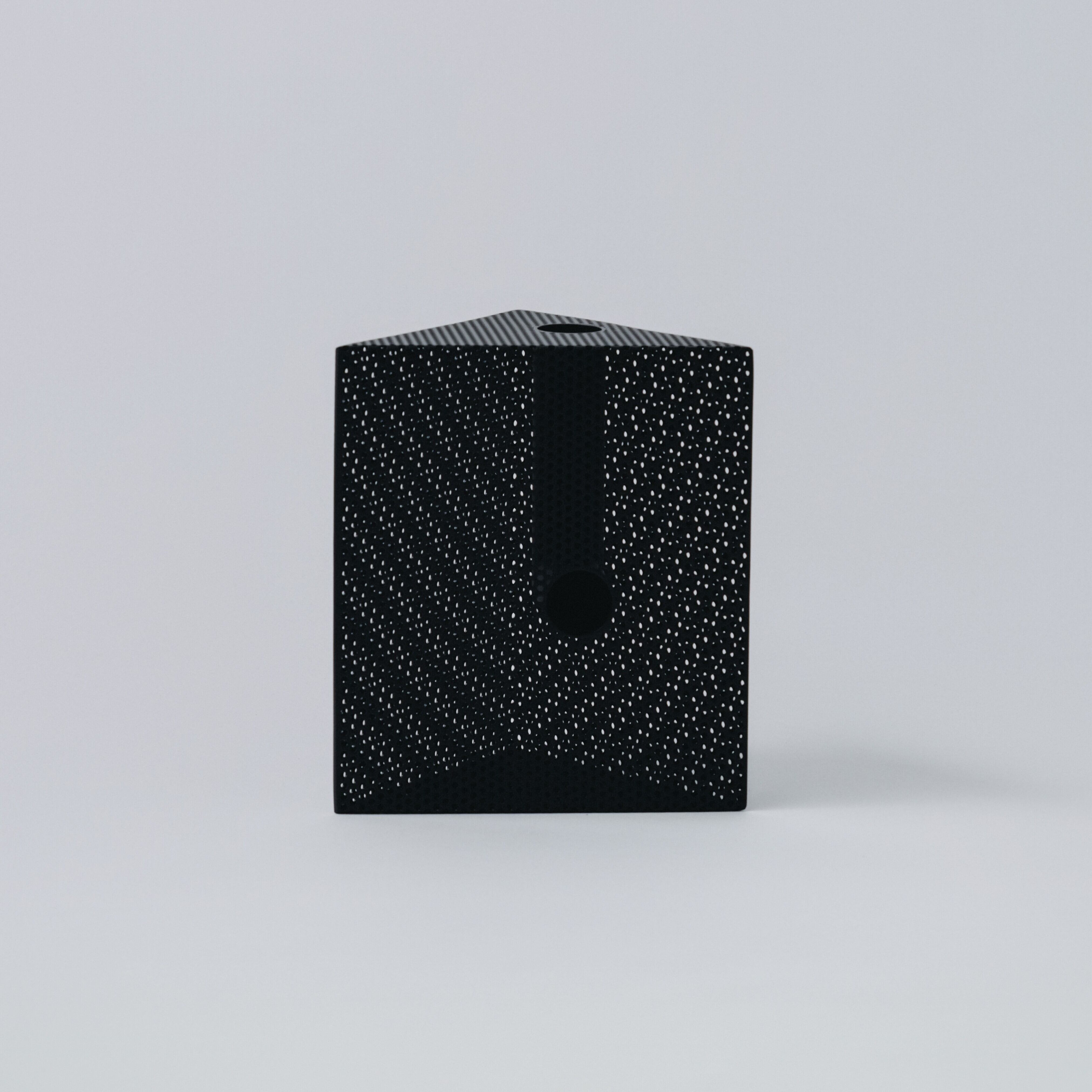 パンチングメタルは、建築・家具・工業製品などで、軽量化・通気性・強度といった機能性を目的に発展してきた素材。しかし、“透けているのに覆っている”、“閉じているようで抜けている” という曖昧な存在感を持ち、光や視点によって印象が大きく変わります。Punching Block は、この“見え方の揺らぎ”そのものに焦点を当てています。